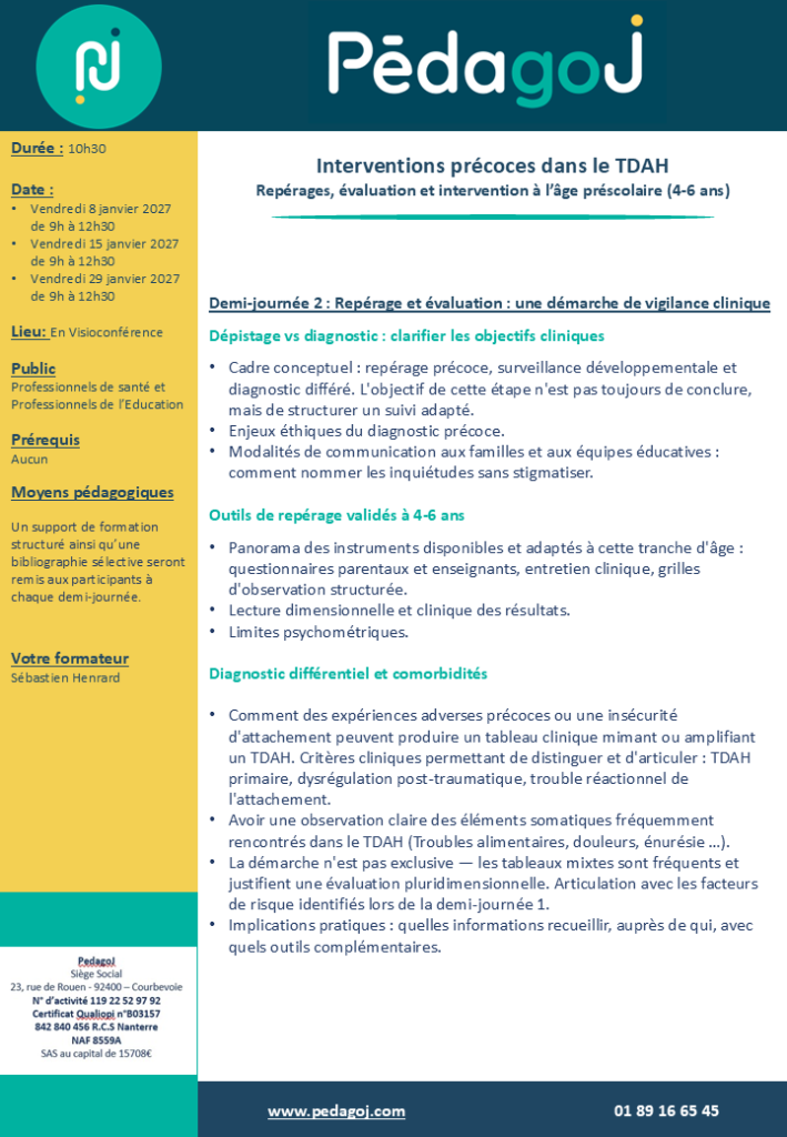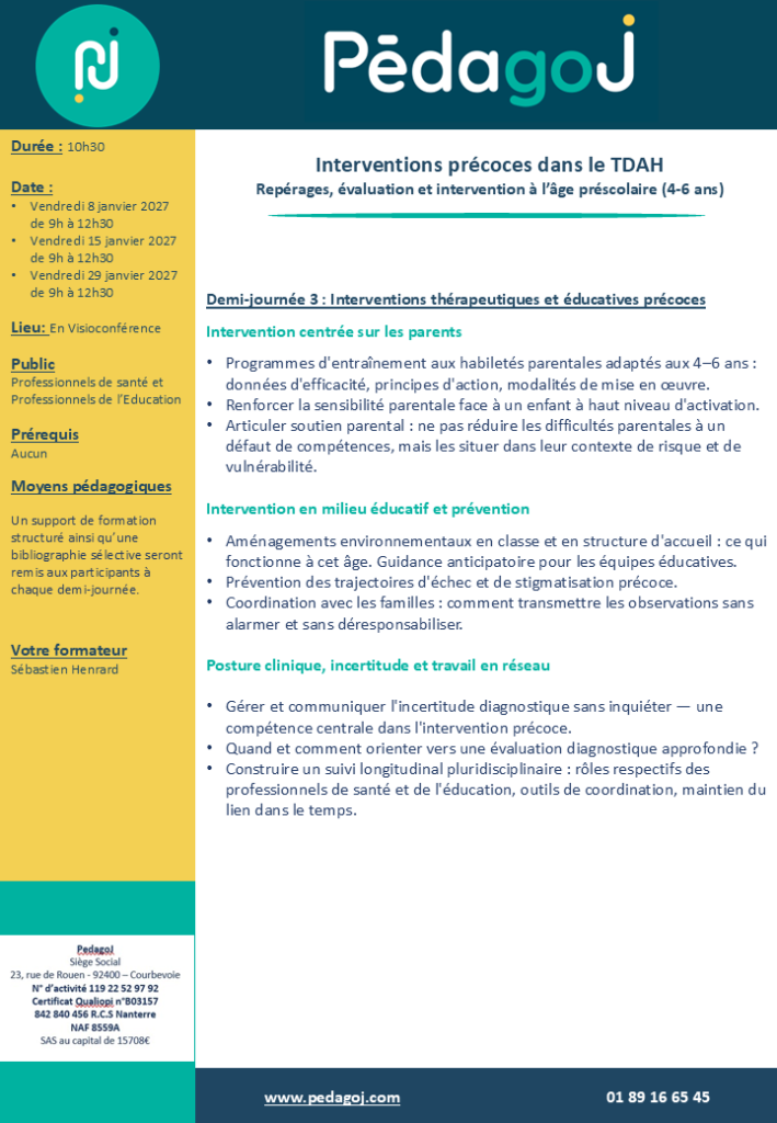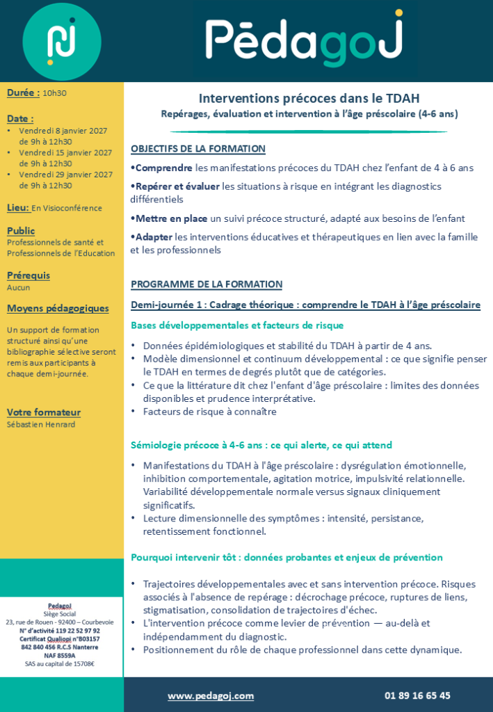 - Repérer précocement les signes d’alerte du TDAH chez l’enfant de 4 à 6 ans, en distinguant développement normal et difficultés.